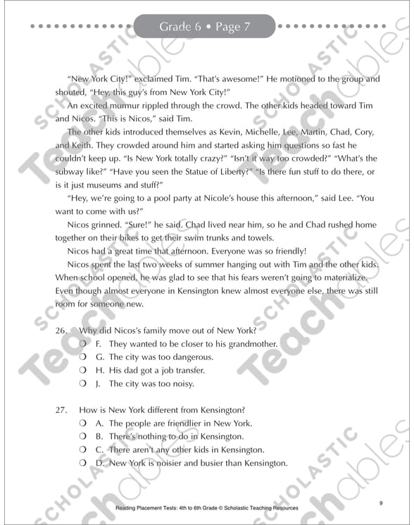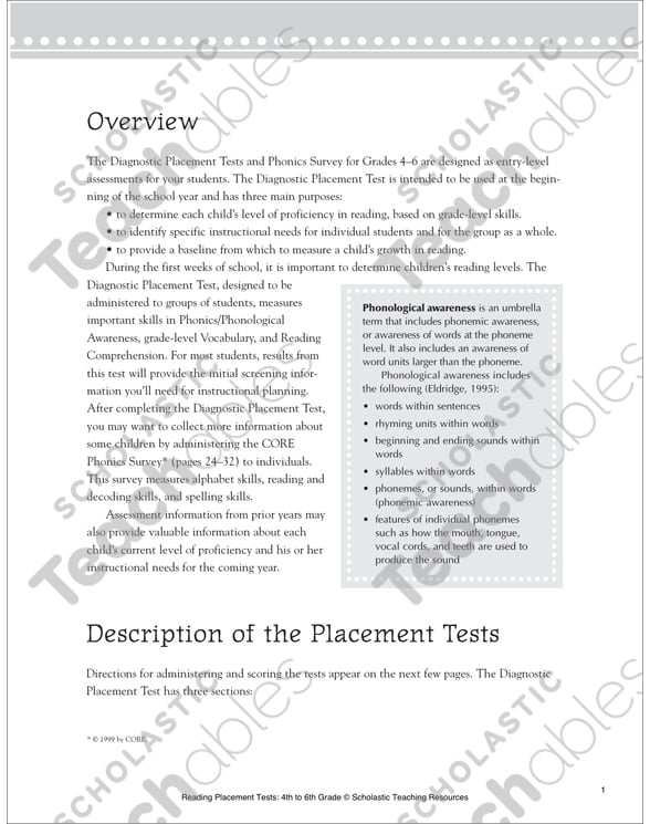 Reading Placement Tests 4th To 6th Grades By